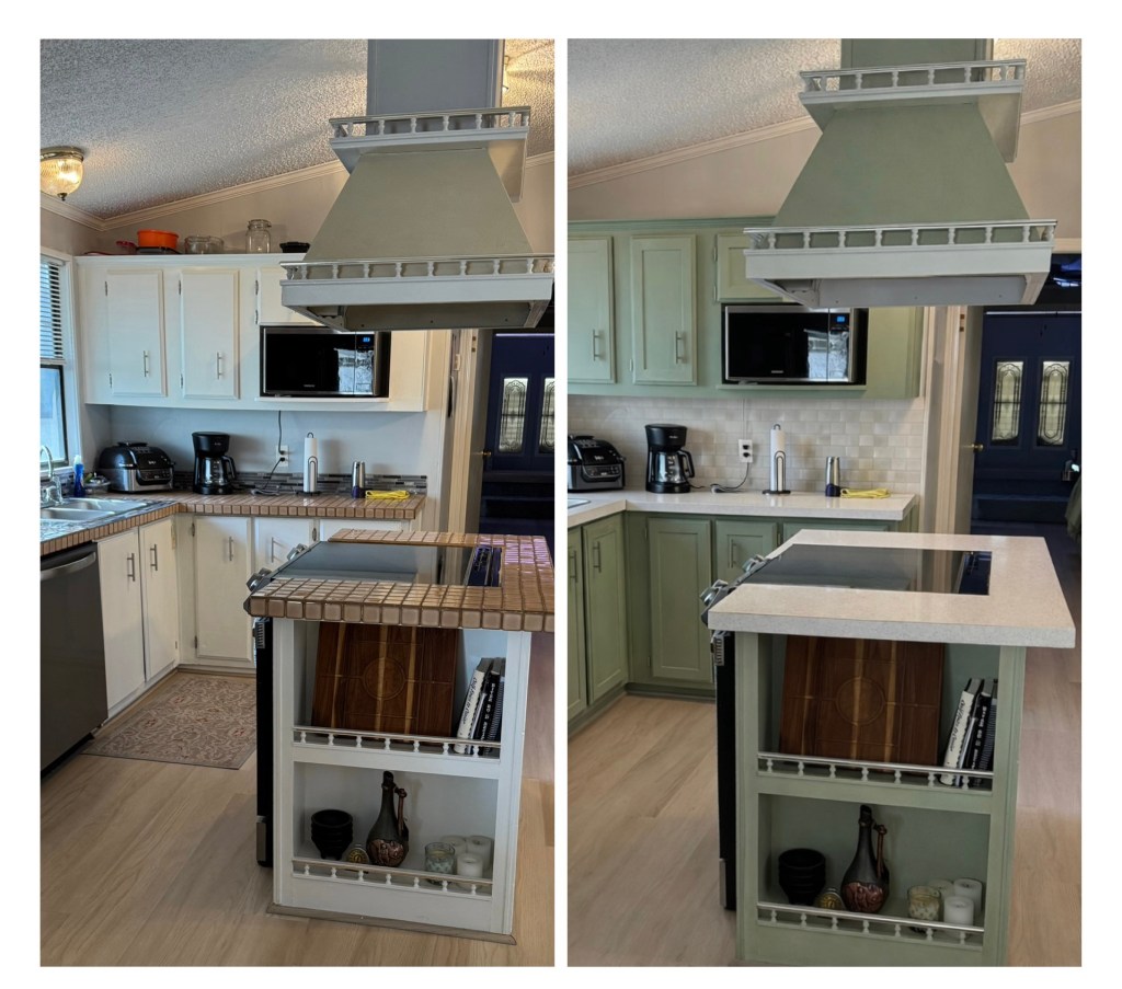 I then submitted a photo of my kitchen here in south Texas, and asked for ideas for cabinet paint and countertops.